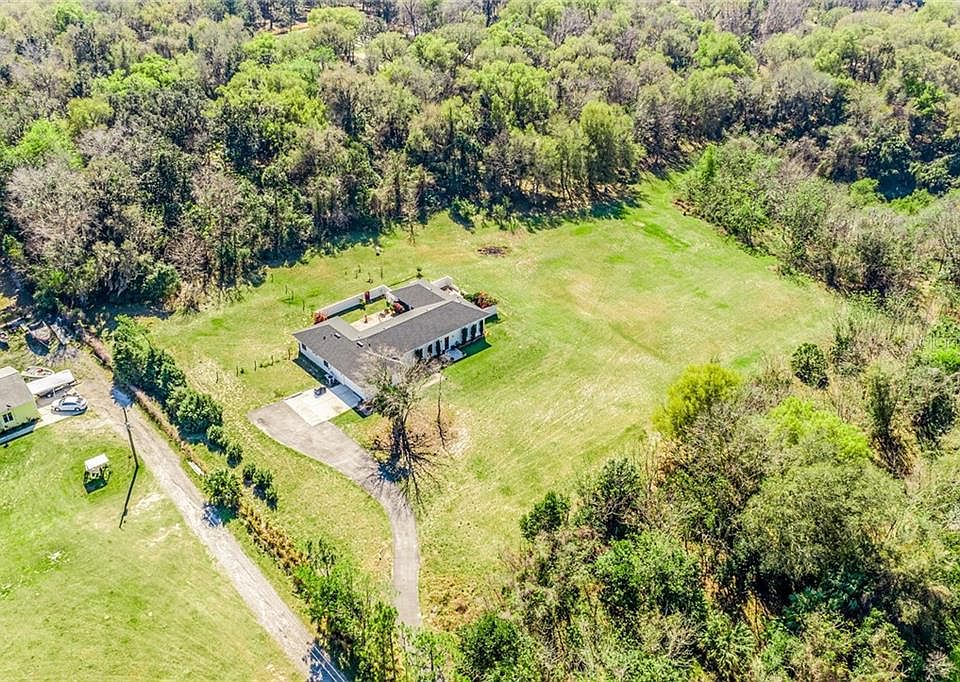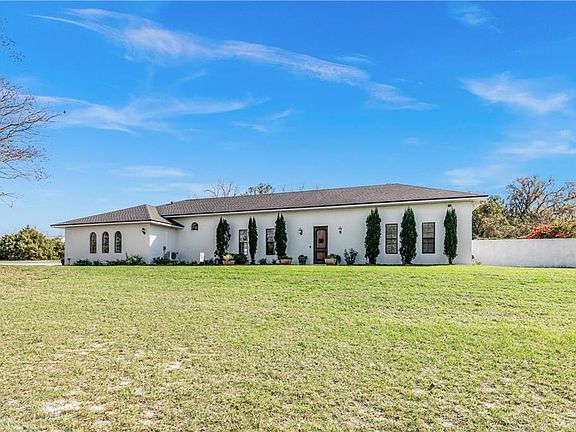 One or more photo(s) has been virtually staged. ***WELCOME TO PARADISE*** This Stunning Custom Built Modern Home sits on a GORGEOUS *6 ACRE LOT* of PREMIER High & Dry Land in Geneva!! ***HORSE FRIENDLY***NEW ROOF 2018, *NO HOA, *Office/Den, *Bonus Room (5th Bedroom), *Air Conditioned Garage and is **ZONED for TOP RATED SEMINOLE COUNTY SCHOOLS!** Zoned for OVIEDO HIGH SCHOOL, LAWTON CHILES Middle School and GENEVA Elementary!!! This amazing property also offers an updated Well & Equipment, Reverse Osmosis System, Interior Walls have Sound Proof insulation, Built-In Generator Hookup, a separate Water & Electric Hookup to build an additional structure such as a barn or In-Law Suite! Entering through the front door you are greeted by 14ft HIGH CEILINGS, a Neutral Wall Palette, beautiful Pendant Lights, several Glass French Doors, tons of Natural Light and a desirable OPEN FLOOR PLAN! This captivating Great Room has a spacious Living Room, Dining Room at the center and Kitchen that all share open spaces making it absolutely perfect for entertaining friends and family. The wall of French Doors can be opened on cooler days to let the fresh breeze in and give access to the gorgeous Courtyard! The heart of this home is undeniably the lovely modernized Custom Kitchen with seemingly endless Wood Cabinets, Corian Counters, Glass Tile Backsplash, Plant Shelving to display decorative pieces, Stainless Steel Appliances and a huge Center Island with additional seating for guests! The grand Primary Bedroom is bright and airy providing tons of refreshing Natural Light, more High Ceilings, Laminate Wood Floors, Glass French Doors and Private Access to the Courtyard & Patio! The Primary En-Suite is another bright room with Corian Countertop Dual Sink Vanity, Step up Tile Surround Soaking Tub, separate large Standing Shower Stall and Walk-In Closet! In total, this home features Four Oversized Bedrooms, Three Full Bathrooms, a Laundry Room, an Office/Den and a large Bonus Room next to the Primary En-suite that can be utilized as a 5th Bedroom, a nursery room, additional living room, home gym, game room, media room, crafting room or truly whatever fits your families needs! As you head outside you will find a relaxing Covered Patio with lovely architectural details and a decorative floor. In the Open Courtyard you'll find a soothing water fountain feature and beautiful flowers, plants and greenery and an outdoor shower!! HIGH SPEED INTERNET IS AVAILABLE and currently hooked up at the property!! Access to major roadways SR 46, 426 & 417 and a short commute to Sanford Int'l Airport, Central Florida Zoo & Botanical Gardens, Oviedo Mall, Oviedo Medical Center, Twin Rivers Golf Club, UCF, shopping, restaurants and more! Peace, quiet and nature abound, don't miss your chance to own this DREAM HOME!
