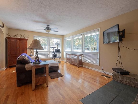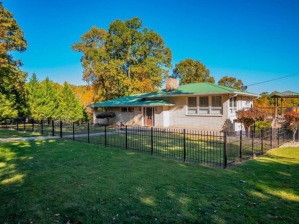 FEELS LIKE YOU ARE LIVING IN THE MIDDLE OF YOUR OWN STATE PARK....Living rm w/gas log f/p, huge eat in kitchen with new SS appliances, current master b'rm can be used as den rm, main level option 3 bedrooms, guest bath has whirlpool & sep shower, endless possibilities, lower level additional rm poss include media, playroom, exercise, home office..HIDDEN room to boot...detached garage/workshop building ,would make awesome party barn.. fenced garden w/blueberry & blackberry bushes//peach, pear & apple trees.. abundance of wild life