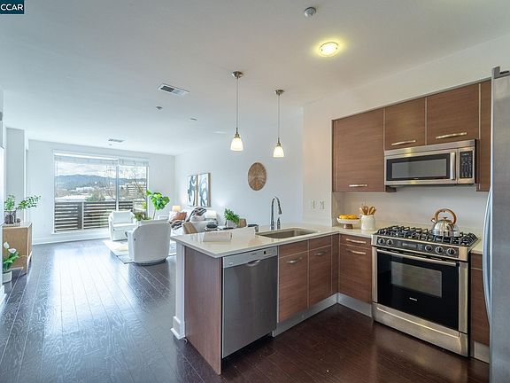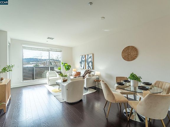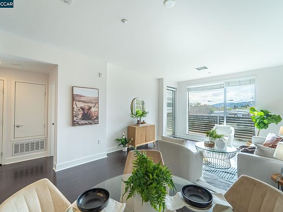 Find yourself living in luxury in downtown Walnut Creek! Spacious 1/1 contemporary condo with an open floor plan & floor to ceiling windows. Kitchen features European cabinetry, stainless steel appliances & quartz countertops. Primary bedroom includes a walk-in closet. Beautiful hardwood floors throughout. In-unit laundry closet with a front load washer and dryer, and a wonderful balcony with a view of Downtown Walnut Creek. One reserved parking spots with additional storage in the garage in secured underground parking. HOA amenities include: an incredible rooftop sky lounge with BBQ's, a fireplace, and stunning views of Mt. Diablo; Renovated fitness center and media room. Secure building with an elevator and a garden-like courtyard. This home is the perfect combination of city living and convenient suburban amenities, just blocks from popular dining, shopping, trails, top-rated schools, BART, and HWY 24/680.