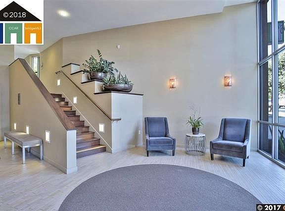 Welcome home to luxury living in the heart of downtown Walnut Creek. This immaculate, bright & airy 1BR/1BA condo w a dual access private deck invites comfort & exudes modern elegance. Beautiful, dark hardwood floors throughout & floor-to-ceiling windows allow for an abundance of light to flow through the open floorplan. Updated stylish finishes in the kitchen feature: custom tile backsplash, Bosch appliances & dimmable pendant lighting. Other special highlights: bedroom suite w walk-in closet, W/D in laundry closet, tile floors w quartz counter in the bathroom, dedicated parking spot & secure storage unit. HOA amenities boast a formal lobby, state-of-the-art media room, private fitness center, guest parking, onsite dog run, landscaped courtyard & an amazing rooftop sky lounge w a fireplace, built in BBQs & stunning panoramic views of Mt Diablo. 555YVR is located near BART, I-680/CA-24, Broadway Plaza, entertainment, fine dining & more.