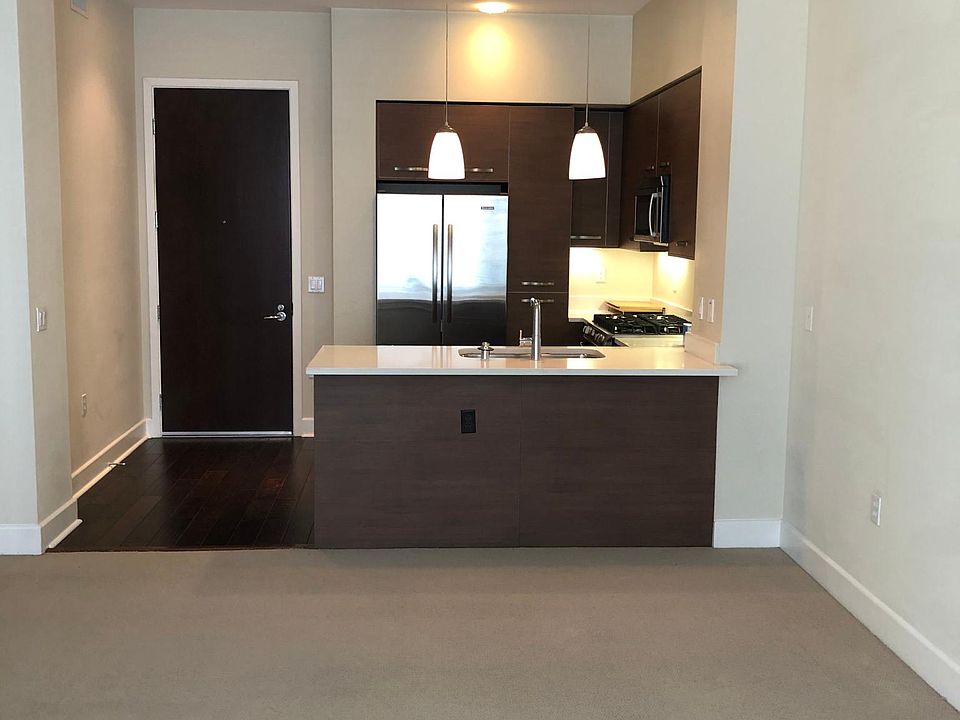 Excellent unit in beautiful newer building in Walnut Creek with superb amenities- gym, roof deck, and more. Elegant unit with balcony, berber carpet, modern kitchen, recessed lighting and more. 4rth floor unit, open airy type building- not your usual enclosed facility! Good credit and income required. Water and trash included. Storage locker also included in garage area.