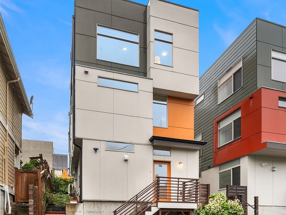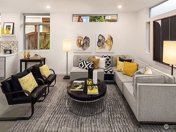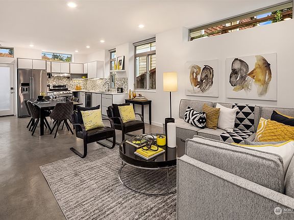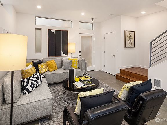 A contemporary aesthetic with inviting character, this modern home allows for care free living, punctuated by features often overlooked. The open concept, anchored by an L-shaped kitchen with gas range, seamlessly flows into dining & living spaces. Stock up on more-than-the-essentials in a custom pantry & under-stair closet. A penthouse-level primary retreat with Mt. Rainier views awaits, featuring a walk-in closet, custom bathroom & gigantic shower. Two additional bedrooms plus an office nook allow flexibility in design. Crowned by a view-deck unlike any other with professionally-installed turf & a motorized awning to extend enjoyment no matter the weather. Moments to Flora Bakehouse & Georgetown shops/eateries. Dedicated parking. No HOA.