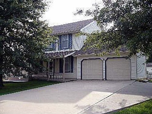 Enjoy the fall on the gorgeous front porch of this well maintained 2-story home in Shawnee! Features a large eat-in kitchen with hardwood floors, breakfast bar, smooth top range & microwave. Lovely livingroom with brick fireplace, and features view of large covered deck. Master suite with w/ bay window, HUGE closet and double vanity in bathroom! Hardwood floors in entry area & dining room. Has main floor laundry area. Large wood fenced backyard with patio and covered deck! Neutral...