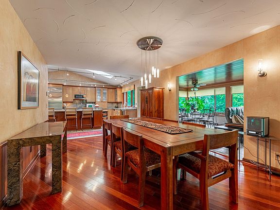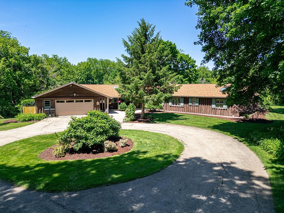 Hot Property Alert! It is secluded and spectacular. Don't miss out on this one-of-a-kind 10-acre ranch located on Keith Creek. This property features a stocked pond and a 8-stall horse barn. It is zoned Ag, completely fenced and gated. The spacious ranch home has a contemporary design with plenty of natural light thanks to the walls of windows. The total living space is almost 5,000 sf, including the finished walk-out lower level. Some interior highlights include an open floor plan, Brazilian Cherry floors, a kitchen with a center island, granite countertops, and stainless steel appliances, along with a very spacious main floor laundry. Sun Room with heated flooring. Entertaining opportunities abound. The grounds are magnificent with views of fields, creek, pond, woods, and more. There is a sprawling deck overlooking it all with brick patio below. Enjoy a short walk to a free-standing covered gazebo area for a barbeque with friends and family.