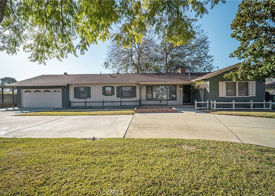 Nestled on almost three quarters of an acre, this classic single-story ranch home has been lovingly restored and is move-in ready! The interior boasts a very large living room with beamed ceilings and expansive glass doors. The fireplace has been designed with a modern smooth plaster finish that perfectly complements the original hardwood floors. The galley style kitchen has been upgraded with elegant taupe cabinetry and quartz countertops, complete with modern gold accents. BRAND NEW designer Café Appliances feature a stove with double oven and new dishwasher. Right off the kitchen is the butler’s pantry with still more storage and a double floor to ceiling pantry alongside a bistro area. The large indoor laundry area has been finished with tile and leads to the covered back porch. Both bathrooms feature a contemporary design finished with floating vanities and glass shower doors, no extra work is required! The exterior of the home features fresh paint and a large porch out front. Conveniently, a carport leads to the back of the property where the sprawling lot continues. Fencing has been installed to segment the property allowing one the possibilities of building an ADU, swimming pool, additional garage- possibilities are endless. Also included is a two-car garage with covered workspace and a back shed for still more storage. Termite work has been completed as well! With its timeless design, spacious floorplan and many amenities this home stands apart from all others and is ready for its forever owner.