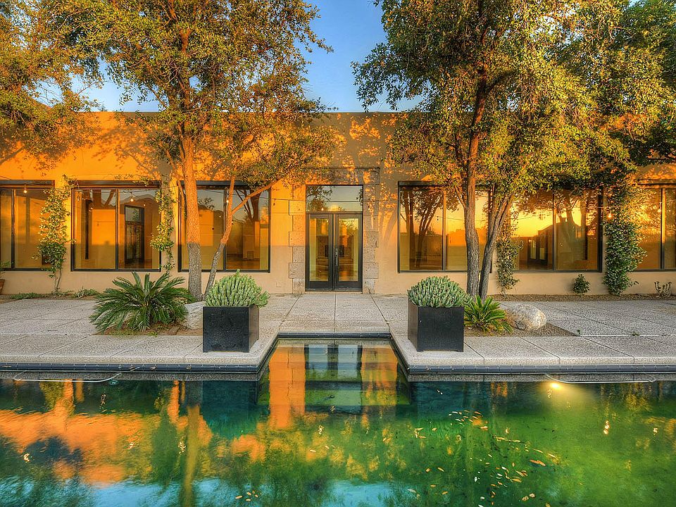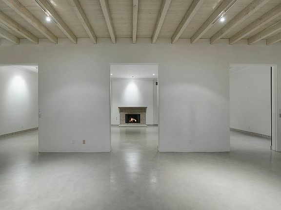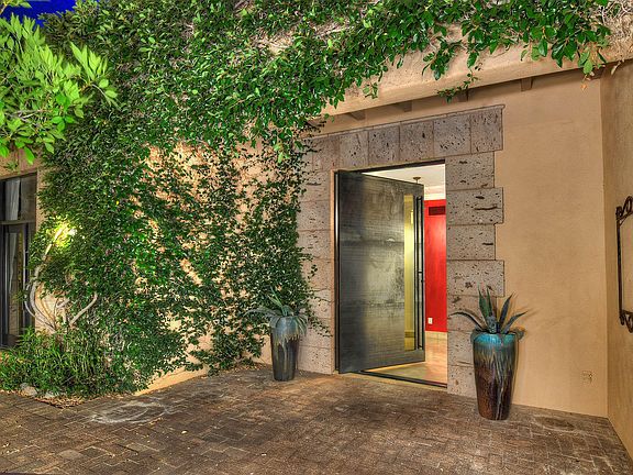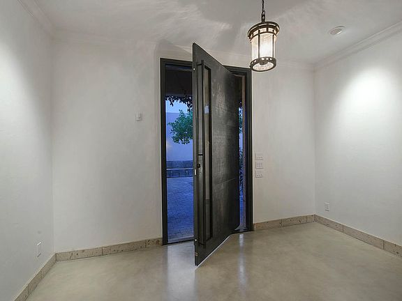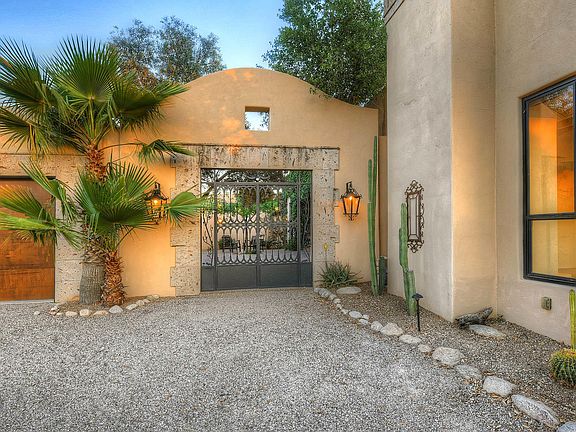 Santa Barbara & Contemporary Elegance blend inside a private, gated brick-paver courtyard, enter main house through a stunning custom contemporary steel & glass swing door, all new gleaming concrete flooring, gracious open floor plan featuring lofted ceilings, dramatic gallery living & family rooms, wall of windows, 3 fireplaces, entertainers eat-in kitchen, master suite incl completely new master bath w/ slate shower wall & luxe fixtures, soaking tub, new (huge) master closet w/built-in laundry, split bedroom plan, home office/den, formal & informal dining space, fabulous expanded yard w/ new hardscape & wall enclosures, built in BBQ, gorgeous pool, spiral staircase to roof, full separate guest house w/living room, kitchen & bedroom, 3 car garage, patios galore, mountain & sunset views!