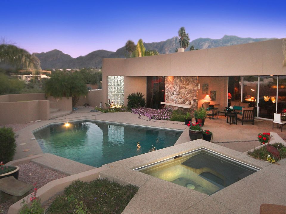 For more information on this property, contact the Listing Agent, Heidi Baldwin at (520) 918-2458 or HBaldwin@LongRealty.com. Range Priced $1,000,000 - $1,195,000.Paved road to tranquil hilltop Frank Lloyd Wright inspired contemporary, mountain and city views. Cantilevered concrete accents. The ultimate home for entertaining with ample parking. Private separate office/hobby room. Garage is built for easy conversion to guest house, or ultimate working garage. Potential buyers must have appreciation for architectural uniqueness.