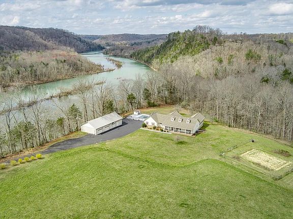 Over 94 acres of beautiful unrestricted pasture + woodlands w/ pond & a custom built home, offering water views of Wolf River. You not only have a spacious house, but a detached 30x60 garage + workshop, a large in-ground pool area, & just minutes to Dale Hollow Lake. Walking up you have a long covered front porch, once in the home you have a formal dining area, an open living room w/ vaulted ceilings & access to your screened in deck. Your kitchen is spacious w/ plenty of cabinetry & an eat-in area. The primary suite offers a spacious walk-in closet & an oversized sunroom w/ wood vaulted detailing to enjoy any time of the year. You also have a finished basement w/ extra bedrooms or bonus space. Get ready for outdoor entertaining, as you have multiple decks and patios to enjoy this season by the pool. The 5 car garage gives plenty of spaces for boats, RVs, or any other toys/machinery.