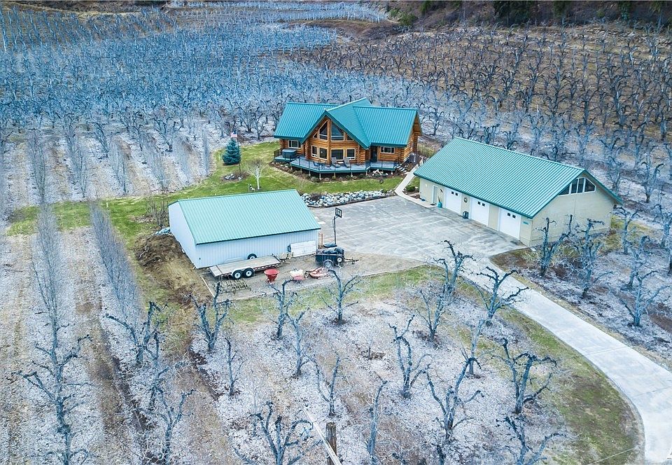 Doug fir log home built from Canada imported logs with Enchantment Mountain views. Great room with large windows, fireplace and tall ceilings. Exquisite exposed logs visible throughout entire home. On the 5 acres of land, there is barn, shop, and massive garage with livable space above, with 2 nonconforming bedrooms, kitchen, laundry and living room. Orchard crops of pears and honeycrisp apples. Quintessential log home with all the privacy and enviable views you will love.