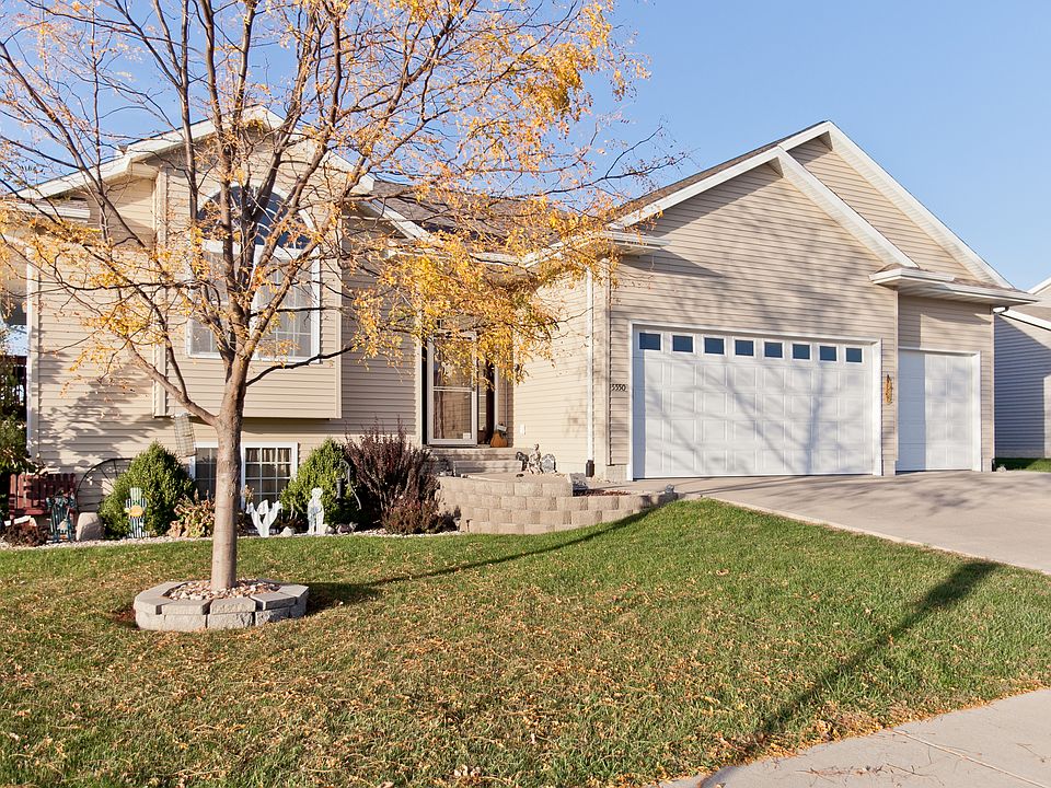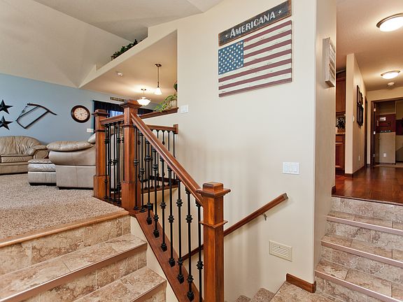 What a great house in a great neighborhood! This custom-built house has the look and feel of a new ranch home. With only four steps up to the main level, spacious great room has vaulted ceilings and flows seamlessly into the kitchen and dining area. Spacious kitchen features pantry, hardwood flooring, SS appliances and sliders to deck. Master suite includes tray ceiling, walk-in closet, master bathroom with dual sink vanity, plus its' own private deck. Lower level features 4th bedroom, 3rd bathroom and huge rec room with fireplace and built-in cabinetry, perfect for your coffee bar. 5th non-conforming bedroom is currently being used as an office but could easily be a bedroom by adding a closet. Large 3 stall garage with overhead door opening into a nice, fenced-in yard. 2 decks and a patio--what a great space to entertain family and friends!