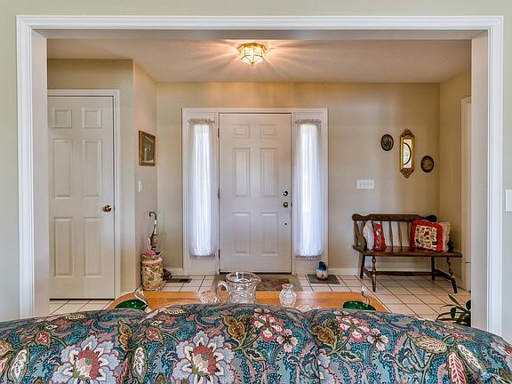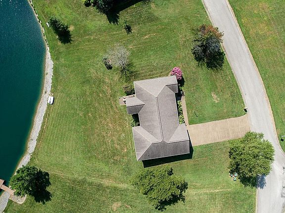 This beautifully landscaped, all-brick ranch-style home with a walk out basement on over 1 acre in Mt. Vernon, Indiana is situated in the quiet community of Lakeland Ridge. This lakefront home with breathtaking views welcomes you with a tiled entryway that opens up into the dining room and the carpeted living room with vaulted ceilings and French door access to the covered back porch overlooking the lake. The bright kitchen looks through to the living room and has space for bar seating and a kitchen table. The primary bedroom has a beautiful view of the lake and boasts a private en-suite and walk-in closet. Across the home, the second and third bedrooms are similar in size and share a full bathroom between them. A tiled mudroom connects the laundry, attached 2-car garage, basement, and kitchen. Downstairs, the large 2nd living space has walk-out access to the back yard, a half bath, and two storage rooms with plenty of space for seasonal decorations. This large ranch has more than enough space for you and your family inside and out!