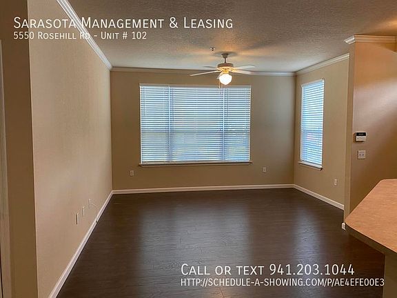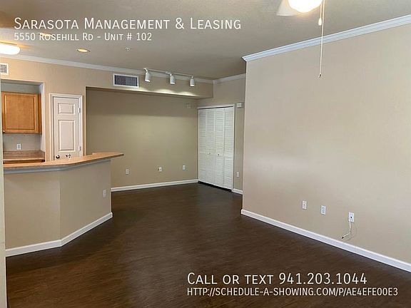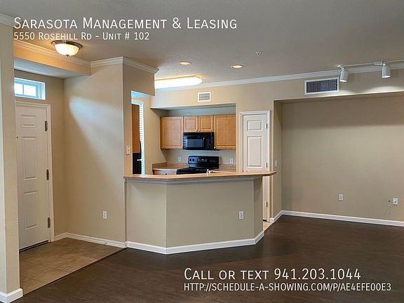 This 848 square foot apartment home has 1 bedrooms and 1.0 bathrooms. This home is located at 5550 Rosehill Rd UNIT 102, Sarasota, FL 34233.
