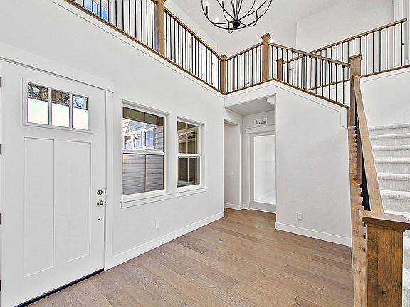 The Highland floor plan is a spacious two-story, 4 bedrooms, 3.5 bathrooms, 3,590 SqFt home. As you walk into the home, you will be amazed by the high level of included new home features such as White Oak Hardwood flooring, Granite throughout, upgraded appliances, tankless water heater and so on. The main entry opens to the expansive Dining Room filled with natural light from the 20 foot wall of windows and conveniently opens to the spacious Kitchen and Great Room . The luxurious Master Suite on the second-level provides a private oasis of comfort, with a free-standing tub, walk-in closet, and large shower. The remaining bedrooms include ample space, thoughtful closet designs, and close proximity to full bathrooms and the rest of the home's amenities. The covered patio is a wonderful space for you to soak in the beautiful Idaho weather and enjoy the backyard. The 3-car garage makes for a functional layout and aesthetically pleasing front exterior.