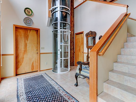 One of a kind Fox Hills custom built home on 2/3 of an acre. Japanese inspired garden wraps around home w/ several areas wonder, play & relax w/ complete privacy. Enter the foyer to soaring 30 ft cathedral ceilings. On-suite bedrm/office on main flr. 3rd bay used for storage, could be converted for car. Owned Solar panels. Custom elevator converts home to 1 level living. Primary suite+ 2 bed, 1 full bath, kitchen, breakfastnk & great-rm are on upper flr. Sun-rm, enclosed porch & more. Must see!