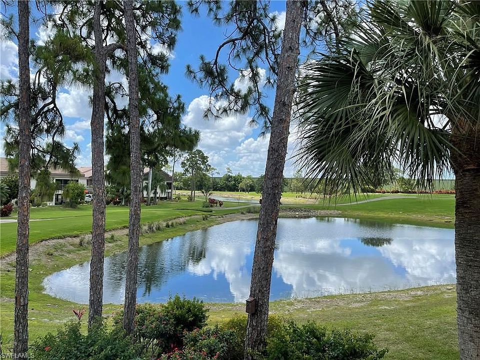 Great view of par 3 and lake! Second floor, 3BR/2BA with open great room featuring New Kitchen, New Baths, Glass Lanai, Vinyl Plank Flooring, Plantation Shutter...plus much more! "TURNKEY", MOVE-IN CONDITION!!! Best SW Florida optional golf value. Own your golf cart and pay no trail fees. ($1485 per year) Convenient location to Beaches, Shopping, Restaurants, Downtown, Airport and Ball parks!