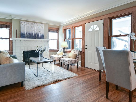 Charming home, located on a quiet one-way street. Sunny front porch with windows all around. Stainless steel appliances in the kitchen. Main floor bedrooms close by, one with walk in closet. Lower level bedroom could double as a family room, with egress window, and 3/4 bath just outside. Finished attic could be used as an office, playroom, or tv room. Nice, private backyard and deck combined with the sound wall make for a peaceful, quiet retreat. Restaurants and shops are within walking distance in this beautiful neighborhood, near parkway and lakes. Come see it!