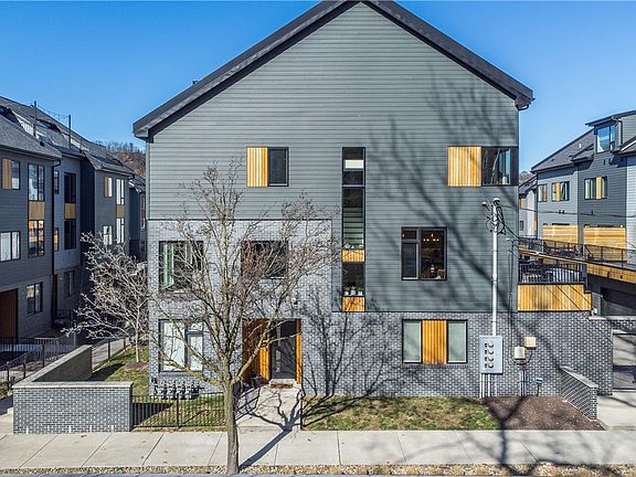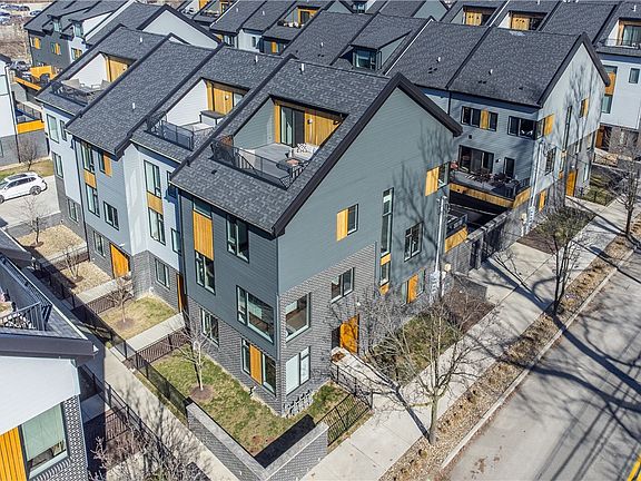 Experience luxury living redefined in this upscale townhome, one of the largest in the development. Meticulously maintained with a plethora of upgrades since construction, this home boasts soaring floor-to-ceiling windows that flood the space with natural light. The elevated main floor features an impressive living room with a cozy fireplace, floating shelves, convenient half bath, and hardwood floors throughout. The gourmet kitchen, complete with quartz countertops, opens to the dining area and rear deck through expansive sliding doors. The private owner's retreat offers a spa-inspired walk-in shower and custom closet. Two additional bedrooms, full bath, and laundry complete this level. Entry level includes a 4th bedroom, now a home gym, a 3rd full bath, and 2-car garage. Setting this property apart is the redesigned 4th floor with expansive bar, lounge, and home office, leading to rooftop deck with city views. This home offers unparalleled luxury and functionality.