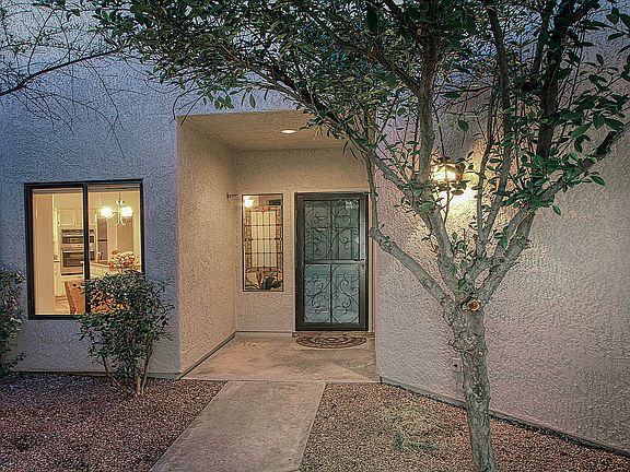 What a gem! Lovely patio home in the coveted, gated community of San Miguel with pool, tennis court, & clubhouse all nestled in a park-like setting. This home sits on one of the nicest interior lots, close to amenities & a deep north facing backyard for majestic mountain views. The seller has gone to great lengths to prepare this home for market. Roof has been recoated. Freshly painted both inside & out. Professionally cleaned top to bottom! You'll love the charm of the high ceilings, gas fireplace, mix of saltillo tile and concrete floors, functional kitchen with granite counters, stainless appliances, cook-top island and breakfast nook, large master with french doors lead out to a private patio, large 2nd bedroom, & terrific backyard for entertaining & views. This one can't be beat! Cook-top island has gas connector underneath & can be easily converted. Gas stub-out on back patio for natural gas grill. Seller has architectural plans available to enclose area off master to create more living space/den/office.