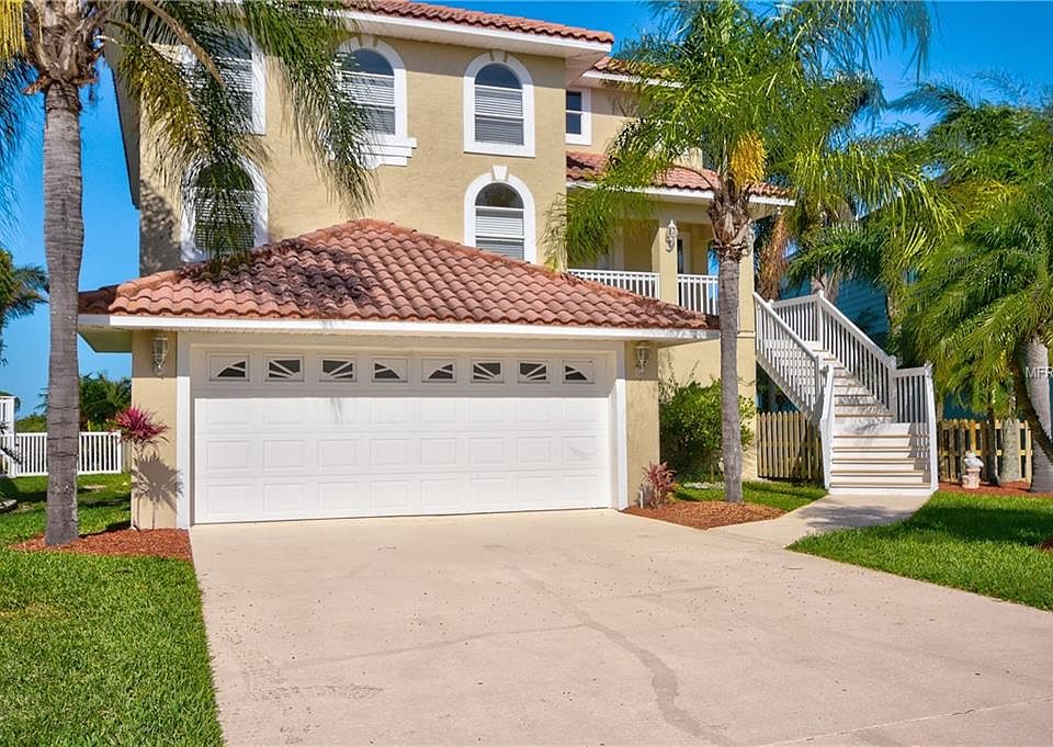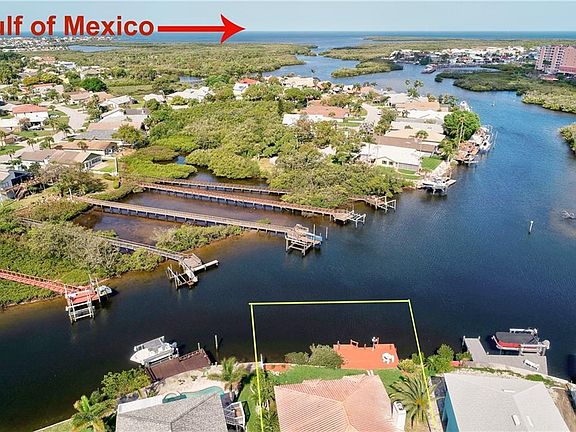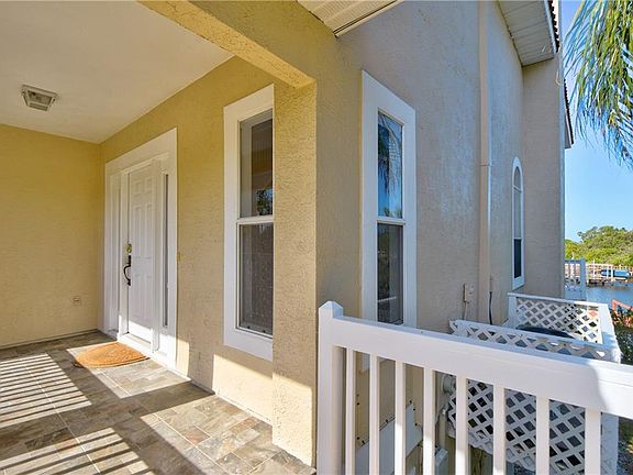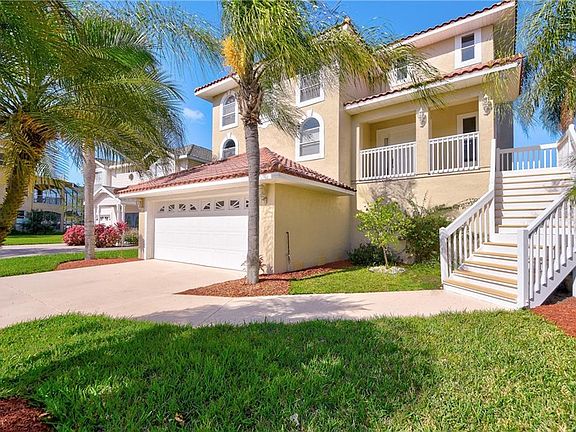 BEAUTIFUL, LIGHT, BRIGHT, COASTAL LIVING next to the Gulf of Mexico! This 4 bedroom, 4 1/2 bathroom home is amazing with gorgeous water views on each of the three levels! The bottom floor has a 4+ car tandem garage with space galore for parking, storage, and more. On the main level, the family room, with volume ceiling, has a full view through the sliding glass doors leading to the upper deck of the intracoastal waters and the Gulf and has an ornate fireplace for those chilly nights. The kitchen with granite countertops, stainless steel appliances, and plenty of cabinet space is open to the family room and adjoins the separate formal dining room. All four bedrooms have an en-suite full bathroom for privacy. Two bedrooms are on the main level and a third bedroom and master suite are upstairs. The master bedroom is spacious with over 400 square feet overlooking the pool, intracoastal waters, and Gulf from the deck on the top level. Bring your boat to the private boat dock in the backyard and enjoy boat rides and serene sunsets. Entertain by the pool with a covered lanai and convenient stairway access to the upstairs deck. Recent updates include: NEW CARPET on the main level, NEWER EXTERIOR PAINT (about 2 years ago) and NEW INTERIOR PAINT throughout. Sea Colony at Gulf Landings allows access to the private beach, Gulf Harbors Beach Club, with a community pool, tennis courts, boat ramp and more. Vacation all year long!!!