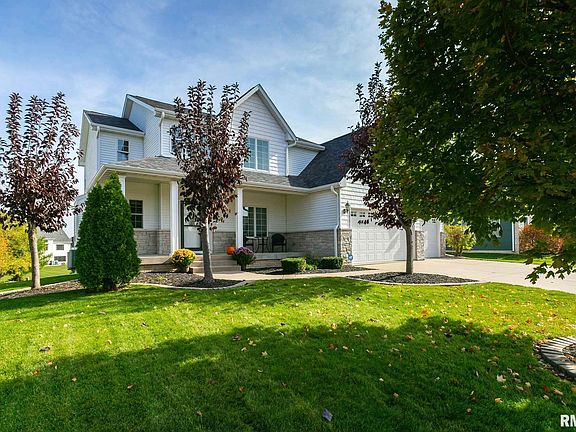 You'll fall in love with this stylish and classy, 4 bedroom, 3 1/2 bath home located in Bettendorf. You are greeted with a large covered front porch before entering into the fabulous 2 story foyer. The formal dining room has beautiful hardwood flooring and crown molding. In the great room, you'll find a gas fireplace and access to the large, open kitchen! The kitchen has stunning granite counter tops, cherry cabinetry, breakfast bar and center island and all stainless steel appliances. Just off the kitchen, you'll discover the laundry area for your convenience. You have direct access to your back yard and deck from the informal dining room. The master en suite and three guest bedrooms are on the upper level. The master en suite has cathedral ceilings and the master bath has a double sink vanity, soaking tub and walk-in shower. The finished, walk-out basement has a 43x13 rec room, an extra dining area and a fridge and counter area. This is a fabulous, Terry Knutson home for any buyer!