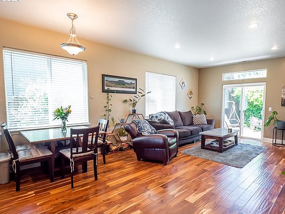 Timeless charm meets modern comforts awaits you at 5551 Livingston Ave, Eugene. Nestled in the desirable Greenbriar Meadows, enjoy unobstructed westerly views of the protected wetlands from the quintessential Craftsman-style covered porch. Head inside to find an immaculately maintained home. High ceilings adorned with elegant crown moldings above-head and ultra-durable Acacia engineered hardwood floors beneath your feet. A wide open and functional floorplan allows access directly from the over-size attached garage, through the indoor laundry/mudroom during the colder/wetter months of the year. Beautiful Japanese maple, fragrant Wisteria and other mature trees & shrubbery establish privacy on a cozy back patio complete with raised garden boxes. The regularly maintained heat-pump keeps the temperature perfect in every season All appliances 4 years old or newer and recent paint in the bedrooms makes this gem worry-free for years. This move-in ready home packs a lot of punch for the price. Don't miss the opportunity to make it yours!