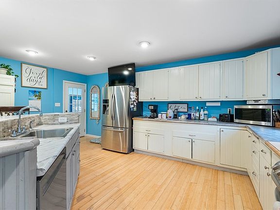 Come take a look 6 bedroom and 3 full bathroom village home. This home offers a large eat in kitchen with a custom island and matching stainless steel appliances. Kitchen leads into a bonus room that could be used as a study, den or play area. First floor offers 1 full bathroom with laundry, a first floor bedroom and a cozy wood fire place in the living room. Upstairs lacks absolutely nothing! It offers 5 bedrooms with 2 full bathrooms. Each bedroom offers closets for lots of storage. The en-suite offers 2 walk in closets and a door with stairs that will lead you outside to the backyard. The backyard has beautiful landscaping, mature trees and garden to grow your favorite foods. There is an above ground pool and deck to enjoy summer fun and relaxation. Also there is a shed for storage that could easily accommodate lawn equipment and supplies. The best part of this backyard is the sound of the creek that runs on the perimeter of the back of the property. The front of the home has a gorgeous porch and a 2 car garage. This property has many new updates and has been very well maintained and loved! Come take a look, it won’t last long!
