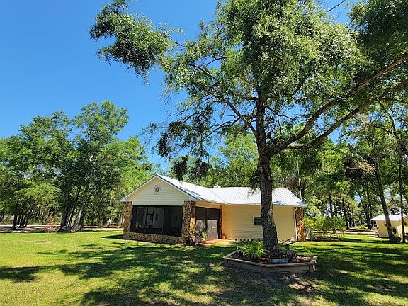 Looking for a forever home, a home to weather the storms in Florida? This CBC home with hardy plank, metal roof, whole house generator (Generac 2 yrs old), full rv hook ups, propane tank(250 Gallon), fenced 5 acres with automatic gate (2 remotes,solar) you will be set. The features include a 40x24 metal building with concrete floor and drive thru doors and water, electric, 18x40 full rv carport full hookup, new water softener 2023, new well house 2023,large screen front porch, 2 master bedroom suites, wood stove, stainless appliances, custom features, a surround sound system, pella windows and doors, and a current survey. Very close to Blue Springs State Park. Grow a garden, have some chickens, enjoy all that Hamilton County has to offer.