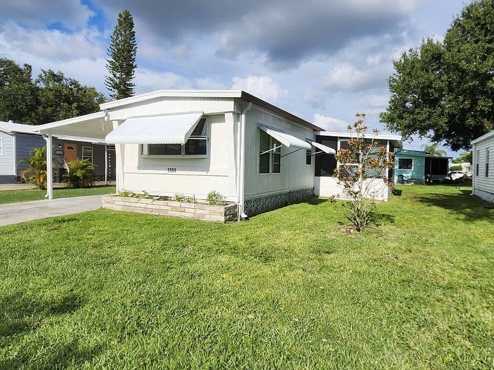 Desperately seeking the perfect haven? Look no further than this charming 2-bed, 1-bath gem that offers a delightful screened-in lanai where you can sip your morning coffee while enjoying the gentle breeze. With an open kitchen designed for culinary adventures, you'll have ample space to whip up your favorite meals and entertain friends! The brand new luxury vinyl plank flooring throughout the home adds a touch of sophistication while ensuring easy maintenance. Spanning 800 sq ft of thoughtfully laid-out living area, it's cozy yet spacious enough to make you feel right at home. And let's not forget the central A/C system - just one year old - providing refreshing comfort during those sweltering summer days. Plus, with recent re-plumbing done, you won't have to worry about any pesky leaks or plumbing woes! This is truly an opportunity too good to pass up; don't wait another moment before making it yours! HOME IS LOCATED IN WINDMILL MANOR JUST OFF OF SR70 AND NATALIE WAY IN BRADENTON. COMMUNITY IS 40+, CLOSE TO RESTAURANTS AND SHOPPING. LOT RENT IS $1100 A MONTH AND INCLUDES WATER, SEWER, TRASH, YARD SERVICE, AND BASIC CABLE. CALL NOW TO SCHEDULE A SHOWING. NOT IN TOWN, NO WORRIES, WE CAN DO PAPERWORK REMOTELY. CALL NOW (RENTALS ARE ALLOWED) The community has a clubhouse, pool, library, rec room, billiards, and this park has a dog park. TWO pets under 25 lbs. A Very Nice park, centrally located to restaurants, shopping, airports, and the best beaches. All listing information is deemed reliable but not guaranteed and should be independently verified through personal inspection by appropriate professionals. Our company does not and cannot guarantee or warrant the accuracy of this information or the condition of this property. Measurements are approximate. The buyer assumes full responsibility for obtaining all current rates of lot rent, fees, and pass-on costs. Additionally, the buyer is responsible for obtaining all rules, regulations, pet policies, etc., associated with the community, park, or home from the community/park manager. Our company is not responsible for quoting said fees or policies. Financing is available through 3rd party lenders. The sales price does not include tax, dealer fees, or administrative fees. Please contact the sales agent for additional information.