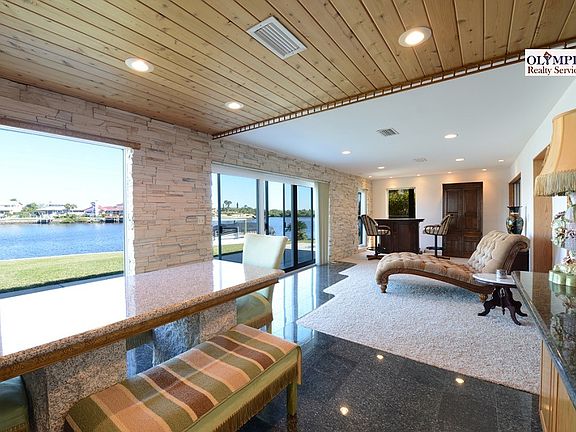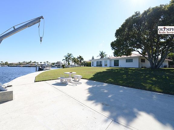 What a water view A prime, pie shaped lot, with almost 200 feet of seawall and two docks (one floating and another, new stationary with lifts). The house was already one of a kind, with beautiful granite tile floors (some rooms have carpet) and upgraded kitchen with solid oak cabinets and black granite countertops. The most recent upgrades include new tile roof, new deck with lifts, new windows and doors. Florida room has new large sliding doors with an excellent view of the harbor, looking to open water with some small islands consisting of protected mangroves, and yet around the corner from open gulf waters and no bridges to limit the size of your boat (you may even have sailboat if you wish). You need to visit this house to appreciate what it has to offer.
