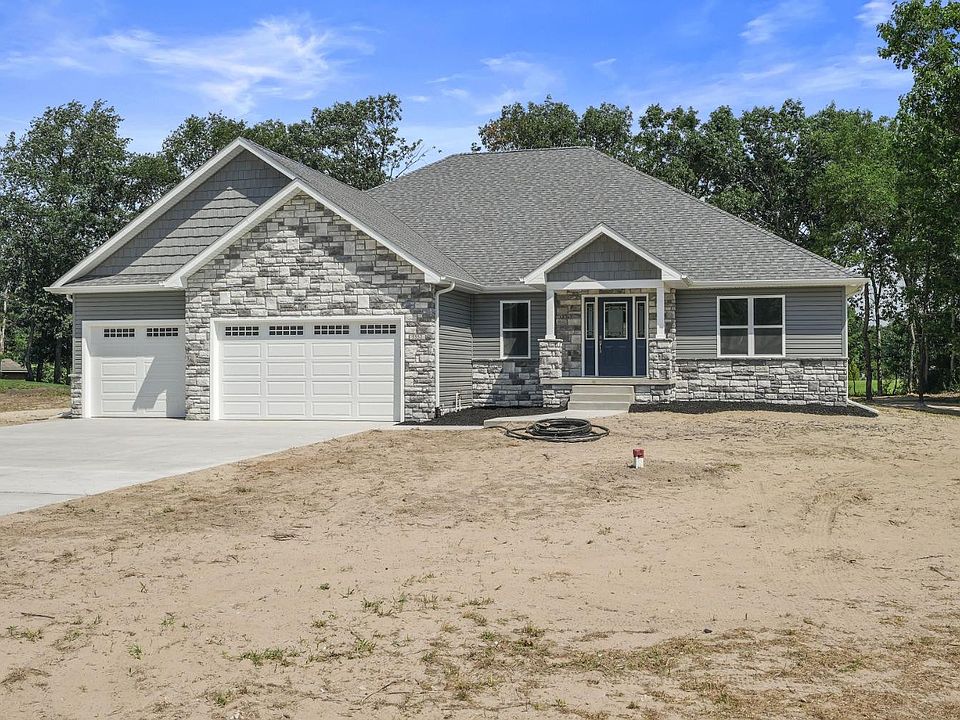 Brand new construction Ranch Home with DAYLIGHT BASEMENT located on Sandy Pines Golf Course in The Oaks.Home sits on 1 acre and offers 3 beds, 2.5 baths, 3 car garage, open concept, 18' vaulted ceilings, fireplace, large finished laundry room, HUGE covered back porch, open stairwell access to basement.All Stainless Steel Appliances are included.Unfinished basement offers endless possibilities, windowsoffer access for naturallight and ability to add additionalbedrooms, great room, and storage. Another full bath has already been plumed in as well. Tankless water heater for on demand hot water, home also includes a deep well so water pressure is never an issue.An additional extra wide stairwell leads you to the garage from basement, perfectfor easy moving. Home also includes a sprinkler system in front and back yard. Plenty of space on north side of home to built an additional detached garage as well. You can't beat the location, home offers everything you need, just move in and enjoy