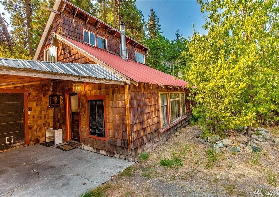 Amazing location. Investors dream. Used for Airbnb past 3 years. Leavenworth only 7 miles away. 2 bedroom plus a loft. Great access for snowshoeing, snowmobiling or visiting town. Or make positive cash flow using it as a rental. Great for investors. Home has new roof, paint. Outbuilding was used as an art gallery. Second cabin is larger then first cabin. 2nd structure needs a lot work to make it livable but possible ADU or extra storage. Large 1.25 acre lot with irrigation rights. Live in main cabin as you build your dream home.