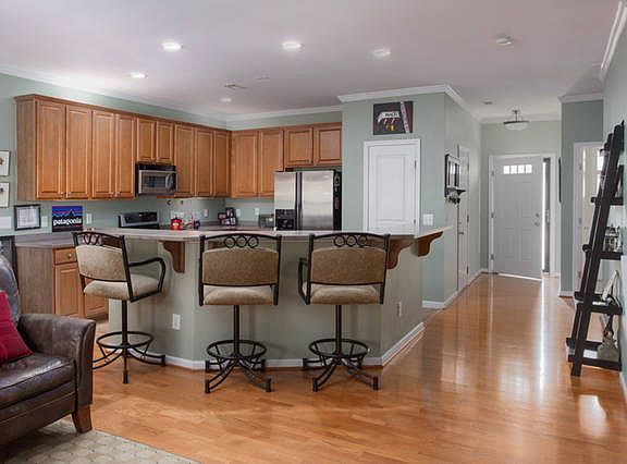 Three bedroom townhome in popular Bryarton Village close to everything. Open floor plan boasts spacious kitchen with abundant storage, upgraded cabinets, & stainless appliances. Upstairs find master suite with tray ceiling & 2 guest bedrooms. Custom plantation shutters throughout home & whole-home intercom/audio system. Private patio backs up to trees & creek. Community pool. Quick access to Crossroads Plaza, DTR, RDU, RTP, 40, 440 & US-1.