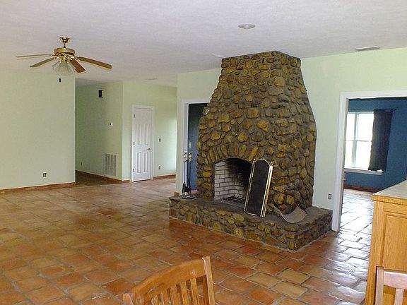 3 bedroom, 2.5 bath w/ office and room attached to garage. Open concept. Bar with seating. Open dining room and living room. Stone fireplace. Basketball/ tennis court. Newly paved road. Centered on the back lot of 36.5 beautiful acres. Red Bud creek runs through the property.