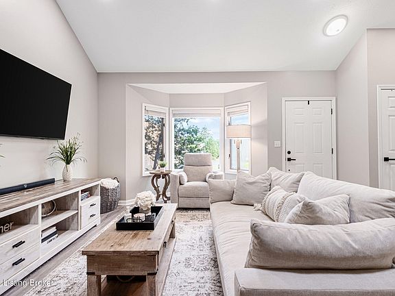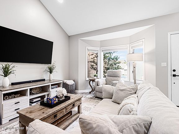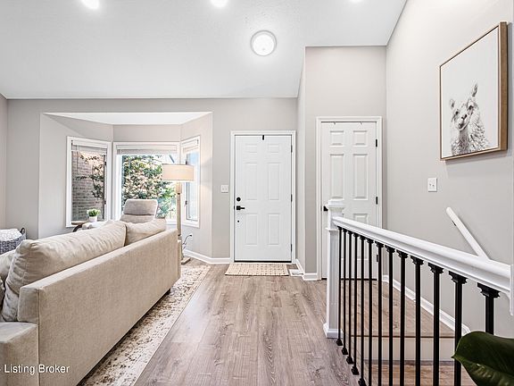 Beautifully updated and nestled between the Ohio River and horse country in picturesque Prospect, KY, the Harbor at Harrods Creek offers maintenance-free living with an array of amenities. Residents enjoy a private clubhouse with a pool, tennis courts, and a marina, all with easy access to the new East End bridge—perfect for walking or biking to Indiana. The home welcomes you with a vaulted living room filled with natural light and lifeproof LVP flooring that flows throughout most of the first floor. The dining room, conveniently located between the living room and kitchen, features stainless steel appliances and a breakfast bar overlooking the living area. Natural light fills the first-floor primary bedroom through double skylights and French door access to the deck. The en suite bathroom has been beautifully remodeled, boasting a free-standing soaking tub with picturesque wooded views, a quartz-topped vanity, and an aesthetically pleasing brick accent wall.