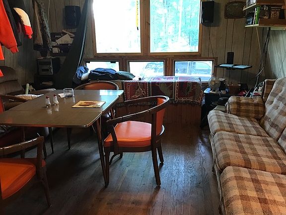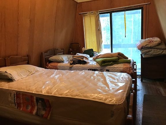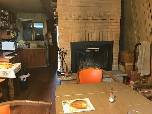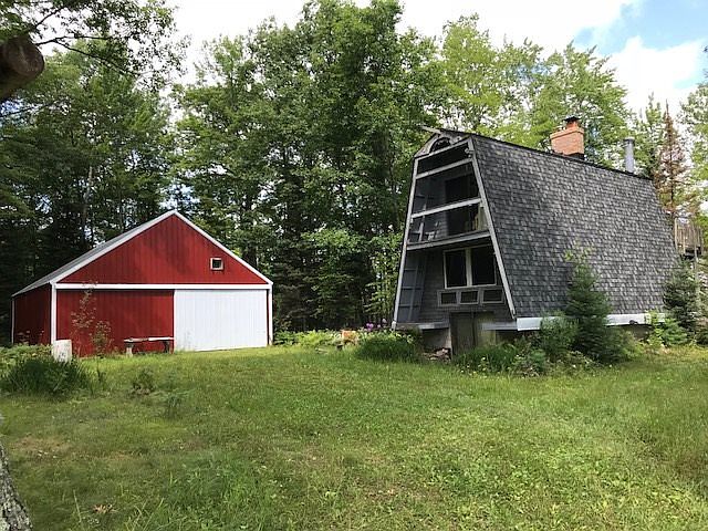A Frame currently used as a camp situated on 1.93 acres. Close to lakes for a perfect get away. Small kitchen, living room, one bathroom, two chemical toilets, wood burning fireplace, basement, well, holding tank, etc. Bonus includes a large pole barn!