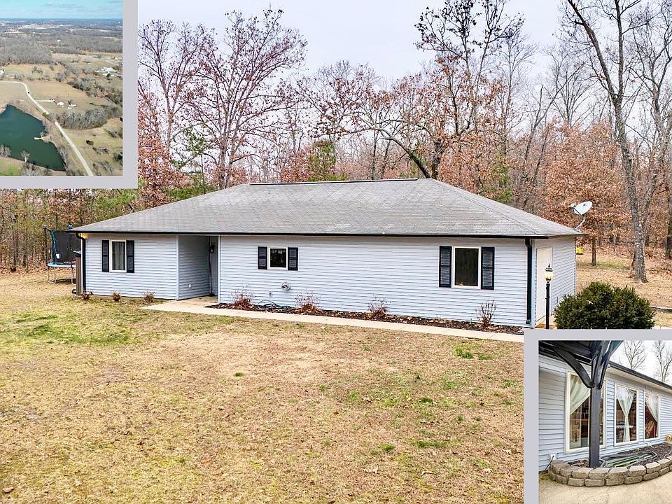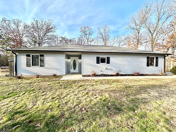 Very nice move-in-ready home tucked away on a private road on a surveyed 4+ acre lot! This well-maintained three-bedroom, two-bath residence offers an open flow, enhanced by arched entryways for a custom, modern look. Split floorplan and good sized bedrooms. Enjoy the privacy of wooded surroundings paired with a flat, cleared yard. The backyard pavilions create an inviting space to enjoy your private backyard perfect for family or entertaining. The property provides access to a fully stocked community lake. Conveniently located off of 160, within the Glenwood School District, and just minutes from shopping, restaurants, medical facilities and much more. Easy access to rivers and lakes makes this property an ideal choice. Schedule your viewing today.