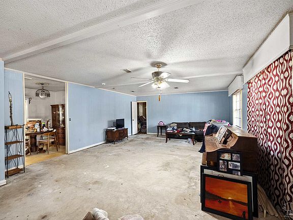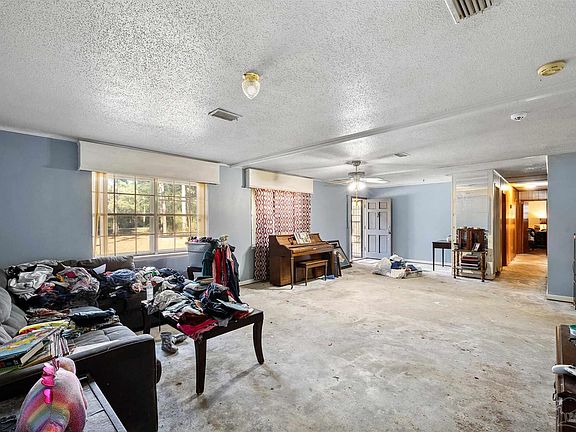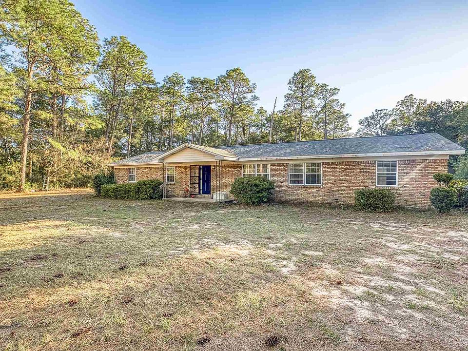 WELCOME HOME! This is a great opportunity to own a home and your own land. Located on 2 acres and hidden away by beautiful established pine trees is your new home. When entering the house you’ll be greeted by a large living room. This is a split floor plan. You’ll notice a large room that can be used as a den or 4th bedroom to your right. Heading back through the living room and down the hallway you’ll find the other 3 bedrooms, as well as two bathrooms. Off the kitchen is the eat in dining room. Conveintly close the laundry room with enough space for shelves to create a pantry. Head on out the back door to the sunroom, and imagine yourself curled up reading a book. You will also notice the covered porch is perfect ftor a grill area or a nice quiet place to rest. if you need extra storage there is a detached 2-car carport and a detached barn style shed/garage. The roof was replaced in 2022. A 3 and 1/2 ton heat pump HVAC system was installed in 2015. Don’t miss your chance to claim this house as your home. House is being sold As-Is.