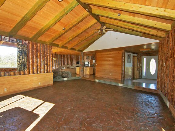 Enjoy the private and open floor plan of this spacious 2 bed, 2 bath ranch-style home on 2.2 acres that offer breath-taking, panoramic views from every room in the house. Custom cabinetry and marble counter tops fill this gorgeous kitchen that overlooks the dining and family room. Luxurious in-floor heating, custom fireplace and detached garage complete this 2,176sf log home as the Alaskan dream.