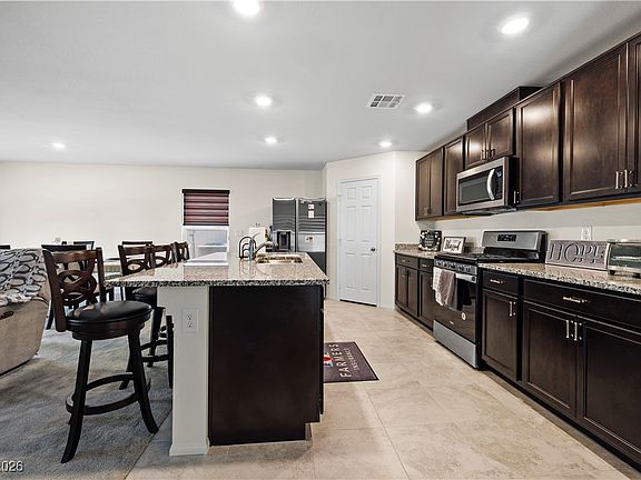 Located in the desirable Southwest community with easy access to 215, home is nearby Ikea, The Bend, Durango Casino, and newly opened Costco. This move-in ready home, built in 2020, is the perfect blend of comfort and convenience. The first floor features an open floor plan with a spacious bedroom and full bathroom, ideal for guests or multigenerational living. Enjoy a low-maintenance backyard with no rear-facing neighbors, offering added privacy and tranquility. The well-maintained carpet and upgraded window shades throughout add a touch of luxury. Upstairs, you’ll find a versatile loft, along with 4 additional bedrooms and 2 full bathrooms. This home has been primarily used as a vacation property, meaning it’s barely been lived in, ensuring it’s in pristine condition. A true gem in a fantastic location!