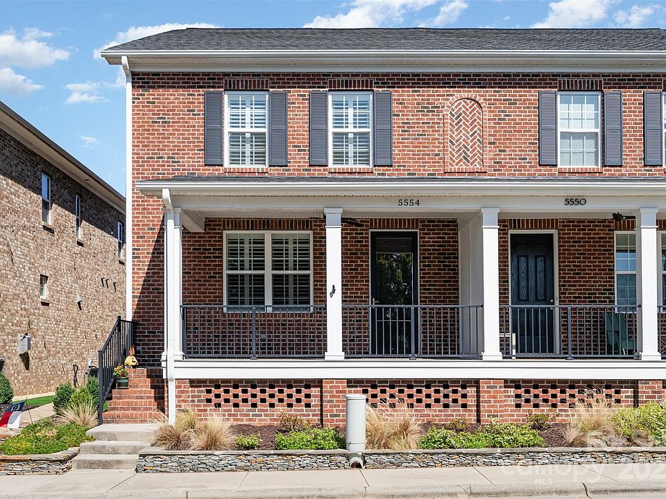 Come tour this gorgeous and well-maintained townhome in the sought-after Afton Village neighborhood, one of Concord's most vibrant communities. This custom-built townhome features an inviting open floor-plan, plantation shutters, hardwood floors, crown molding, and a gas fireplace. The clean, bright kitchen has custom white cabinetry, subway tile backspace, granite countertops and stainless steel appliances. The stunning main level primary suite offers marble floors, spacious walk-in shower, a walk-in closet, dual sinks & linen closet. Upstairs, two large bedrooms share a beautiful bathroom with separate vanity area and garden tub/shower. A large covered front porch looks out on the Afton Village Gazebo. The manicured side-yard with turf, pavers and lights leads to a private, enclosed courtyard with a gas line for future outdoor kitchen or hot tub. Breezeway provides easy covered access to the detached two-car garage.