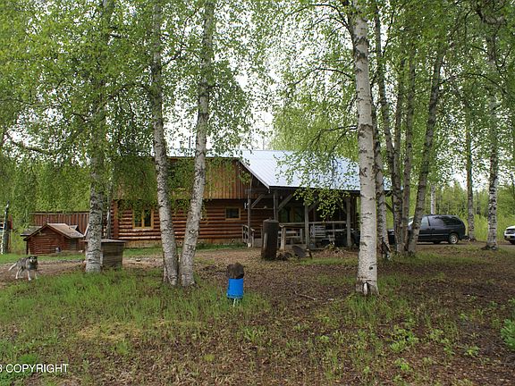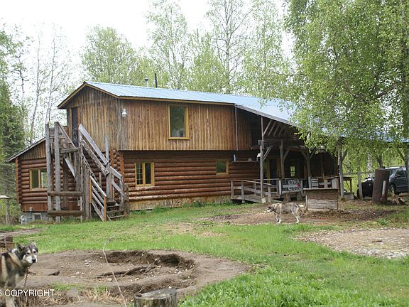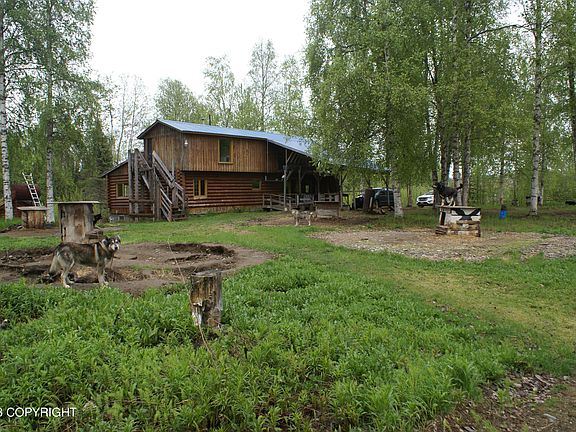 Opportunities abound in this Log home with large acreage off the Parks near Talkeetna. Only 2 other properties have 3 phase power in the area. Currently is a small dog kennel. Railroad is north boundary. House needs TLC. Winter views of Denali. Privacy, location, woods, birds & wildlife, neighbors not near is a bonus. Great business potential, no restrictions. Wetlands in the back of acreage.Perfect for mushers! Established dog lot.