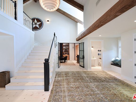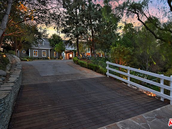 Inside Hidden Hills' most prized cul-de-sac, a bespoke Hamptons inspired estate is sited on a 1.75+ acre view lot. Re-imagined by renowned interior designers Clements Design Group, offering appx 8600 SF of living space. Bleached knotty pine plank floors, exposed beams & steel-clad doors are found throughout. Two-story foyer, striking great room, and entertainers bar area complete w/ wet bar and dramatic fireplace. The chefs kitchen affords open-faced display shelving & copper accented hood w/ professional-style range. A first-floor master incorporates garden views, fireplace, dual walk-in closets, & spa-like bath. State of the art THX home theater. Park-like grounds, lush lawns, & rich landscaping for ultimate privacy. Entertainers patio w/ outdoor fireplace & BBQ. A lower pad hosts a sparkling saltwater pool & spa, fire pit and pool house. Surreal tranquil canyon views add to the magical ambiance of this one of a kind quiet, private, & peaceful estate. A truly must-see experience.