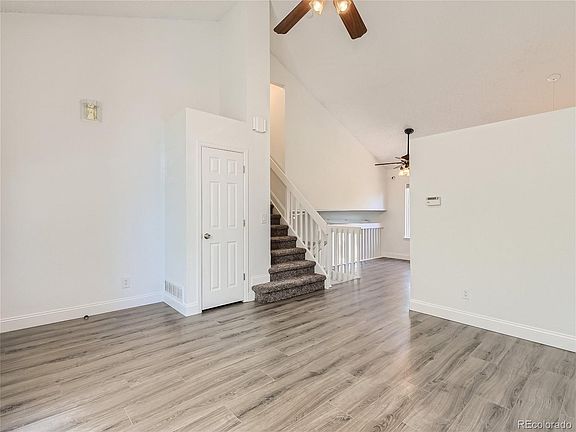 Spacious 3 bedroom 2 bathroom split-level home in the highly desirable Woodbridge Station Neighborhood. This wonderful community includes jogging trails, a park with a playground, sports fields and the Thornton Recreational Center is just 2 blocks away. The open floor plan with vaulted ceilings has great natural light and sliding glass doors to access a large fully fenced backyard with a shed. The Master Bedroom boasts a private ensuite bathroom and large walk-in closet. The upper level is completed by 2 secondary bedrooms and a full guest bathroom. The partially finished basement provides ample storage space or can easily be finished for more square footage. There is a 2 car garage as well as a large driveway for off-street parking. Clean, well-maintained and move-in ready!
