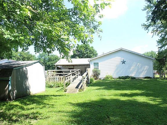 Cute and open 3 bedroom, 2 bath vinyl-sided ranch sits on nearly a third of an acre with chain-link fenced yard and nice deck. Situated near the lake and not far from shopping and restaurants. Spacious living room with beamed cathedral ceiling is open to the dining area and kitchen. Front of house boasts two bay windows. The master bedroom is large with French doors to the deck, walk-in closet with pocket door, and a master bathroom with shower and ceramic tile floor. Wide hallway, doorways, low level carpet, solid surface flooring, and ramp to the deck offer handicap accessibility. The 2.5-car garage and wood back yard shed will hold a lot of your outdoor toys and tools. September 2019 updates include freshly painted kitchen cabinets, updated door and drawer pulls, ceiling light fixture; freshly painted hall and master bathrooms, and freshly painted garden shed.