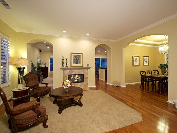 Beautiful sunny bright Bordeaux Plan 3 . Formal entry with gorgeous marble and wood custom inlay flooring, open and formal living room and dining room with dual sided gas fireplace and custom built in wood wine rack. Open floor plan with gourmet kitchen and family room with gas fireplace, surround sound speakers, wall to wall windows, granite countertops, stainless appliances, built in refrigerator and much more! Walking distance to Sycamore Ridge elementary, Pacific Trail Middle School, Torrey Pines high school or CCA. Close to shopping, freeway, new city park and library!