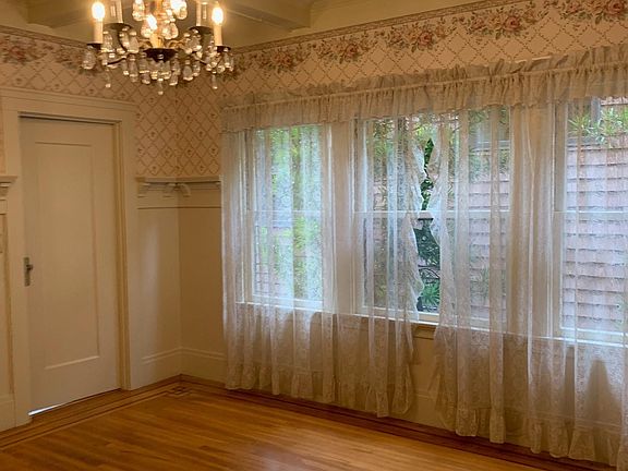 Beautifully decorated Arts and Crafts style duplex located along tree-lined street, two blocks from the Rockridge Bart station. It is a spacious downstairs unit with an old-fashioned porch. The foyer has stained-glass windows. The living room has sconces, a mantle mirror and a fireplace. The blue and white kitchen has a parquet wooden floor, delft tile countertops, and a greenhouse window. It opens up to a sunny deck which overlooks the garden. The formal dining room has a beamed ceiling and a built-in hutch and sideboard. Master bedroom has an adjoining sunroom. overlooking the beautifully landscaped yard with a large redwood tree and a small pond. Bath has a claw and ball foot tub, a pedestal sink, a tiled floor, and another greenhouse window. The hallway has a built-in linen closet, and a walk-in closet. There are hardwood floors throughout the unit, some with inlaid wood. All the woodwork is painted brown, the walls are antique white. Only the dining room, kitchen, bath and hallway have wallpaper. There are chandeliers in the dining room and the additional bedroom, and antique fixtures throughout the unit. There are five wall sconces. There are two basements. One is for storage and the other houses free laundry facilities. Shared parking in the driveway. Residents will have to get a parking permit from the City of Oakland for street parking. Landscaped garden is professionally maintained. It is for viewing, walking and meditating only. Owner pays for water and garbage. There is a 1 year lease. First month's rent and a security deposit required prior to moving in. No smoking allowed. No pets. Shared parking in driveway, parking permit required for street parking. Shared storage and laundry facilities provided. Specific house rules concerning maintenance and changes to property must be followed.