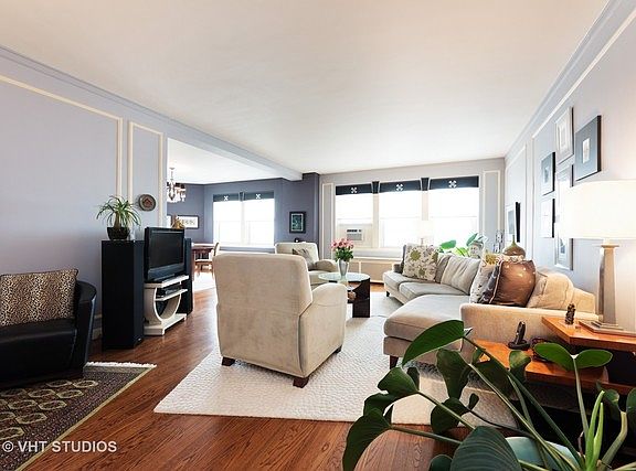High floor, 1700 sq. ft. unit facing north, south and west. Beautiful view overlooking the Edgewater Beach gardens. Hardwood. Gracious, welcoming foyer. Floor plan is perfect for entertaining. Both bedrooms with en-suite baths, plus guest bath. Ample closets and storage. Premier lakefront Co-op, with indoor, heated, lap pool, fitness center and heated indoor parking. Parking is immed available for a fee. Beautiful 2 acre garden with grills, gazebo. playground and bocce ball court. Apartment in excellent condition, but the kitchen awaits your touches. Shops and services. Steps to beaches, fine dining and transportation. No dogs allowed. 20% down required.