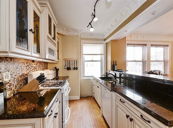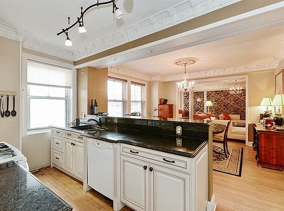 This is a rare and completely renovated 2-bedroom / 2-bathroom at the EBA. The galley kitchen has been opened into the dining room, combining a traditional aesthetic with a modern flow. There is also a large storage area and pantry off the kitchen. The dining room leads into the large living room with a lovely bay window - southwestern exposure provides abundant natural light. The master bedroom easily holds a king bed and features an en suite renovated bathroom. The second bedroom (boat room) has a Parisian-style bathroom with a shower. New crown molding and baseboards are featured throughout. Move right in and enjoy. Easy access to the lakefront path and beaches, Bryn Mawr Historic District, Andersonville & public transit. Assessments include property taxes, heat, cable, Internet, cooking gas, use of all amenities and a contribution to the capital projects fund. The EBA is a co-op building that requires 20% down. Parking is $105 / month. Sorry, dogs are not allowed. 114 shares.