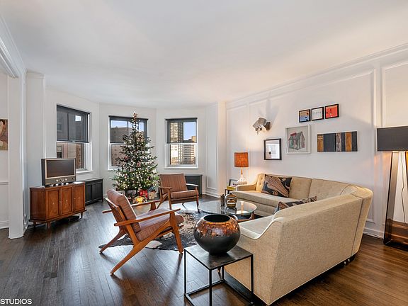 Restored vintage details and modern designer finishes complement this gracious home in the iconic Edgewater Beach Apartments. The formal entryway and original picture and crown moldings blend perfectly with the addition of all new modern lighting, custom Bali solar shades, and refinished hardwood floors. The kitchen's original metal cabinets have been modernized with custom soft-close doors and colors, as have the original built-ins, and a slim pantry has been added to maximize space. A grey quartz countertop, industrial size sink, new stainless steel appliances including a Bertozzi cook-top, and a porcelain tile floor finish off the space. The bathroom maintains its original subway tile with the addition of a new recycled glass mosaic tile floor. The EBA is a full amenity building with 24 hour doorman, heated attached garage with guest parking, indoor swimming pool, exercise room, a 2-Acre award winning garden with grills, seating, and a gazebo. The building has just replaced the plumbing risers and now a washer/dryer can be installed in the unit. Assessments include property taxes, heat, cable, Internet, cooking gas, use of all amenities and a reserve fund contribution.