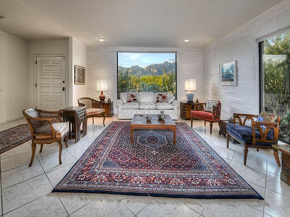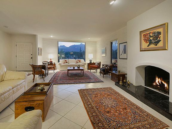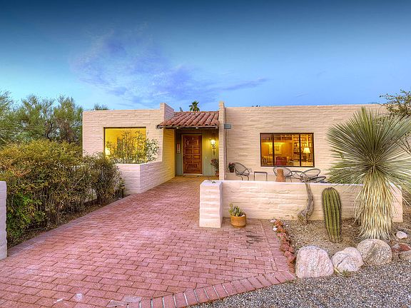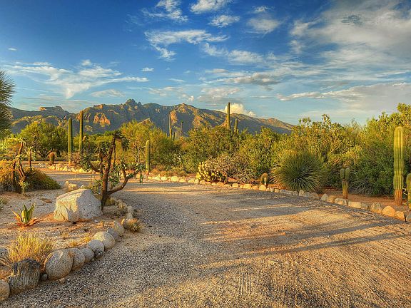 Mountain and City Views! A deep circular drive through a lovely desert landscape leads to Timeless Charm. From your Living Rm, take in the magnificent Catalina Mountains, framed by a large picture window. A graceful Fireplace accents the room. The shelter of a broad, deep, Bricked Covered Porch opens to an Extraordinary Yard with Pool, view of City Lights and a delightful Fountain. From the Romantic Master, step out to its own Covered Porch and Secluded separate Spa. Kitchen overlooks Yard. The Oversized Breakfast Nook opens to Yard and could be configured as a Family Rm. BR two also features a Bath en-suite; it can serve as 2nd Master BR. Third BR has quality rich custom built-ins, two large closets. All NEW ROOF July 2018! Dual-pane Windows, Water Softener, Central Vac and 3-Car Garage. Wonderful Privacy on over an Acre, on a rare View Lot in the Foothills! Laundry Room with Cabinets, Window, Counter, built-in Ironing Board + plumbed space for a Sink. A/C replaced 2014 with Rheem Split System. AHS Warranty. Listed at current Appraisal by Julie Burdick. Prepped for a Security System. Garage has storage cabinetry and a generous storage room with a workbench. Roof Warranty through 07-01-22
